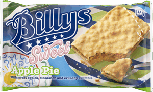 Billys Sweet – Apple Pie: Sweet apples and crunchy cookie crumbs – a classic pie in Billys style! Let me know if you'd like this adapted for packaging, advertising, or something else!