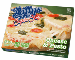 Meet Billy’s Pestolicious: Green pesto, tomato sauce and mozzarella in a perfect harmony on your pizza.